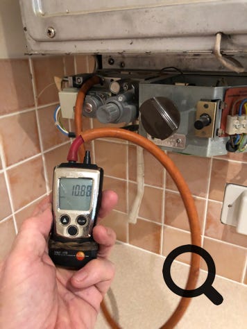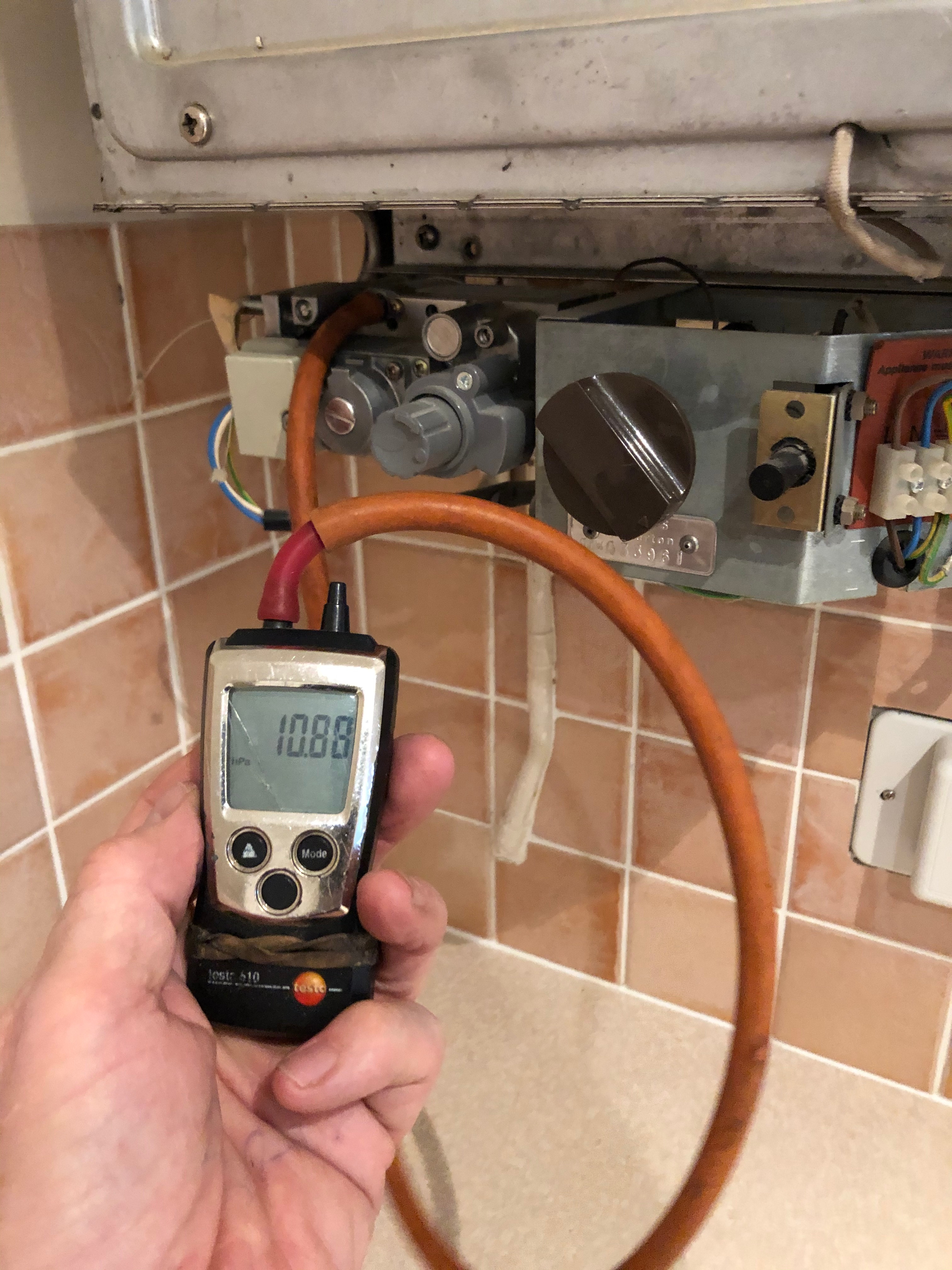 Measuring the burner pressure to ensure it is within the range stated on the boiler data plate.