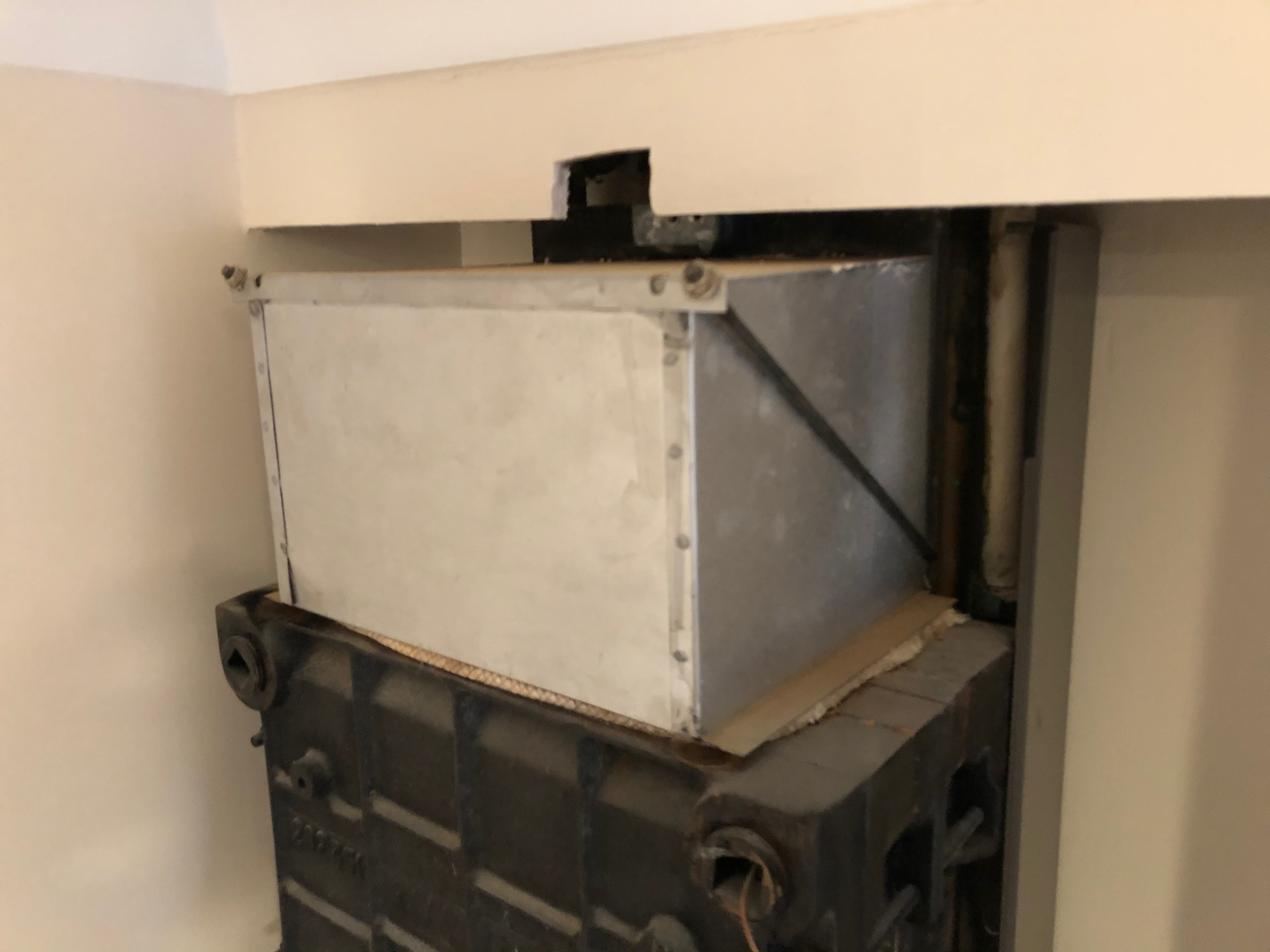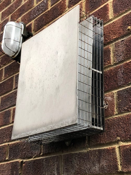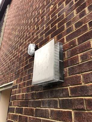 Go outside to inspect the balanced flue terminal. This terminal is a lot larger than a modern boiler terminal as there is no flue fan, the flue gasses leave the boiler by natural convection. Very simple, virtually nothing to go wrong this way.