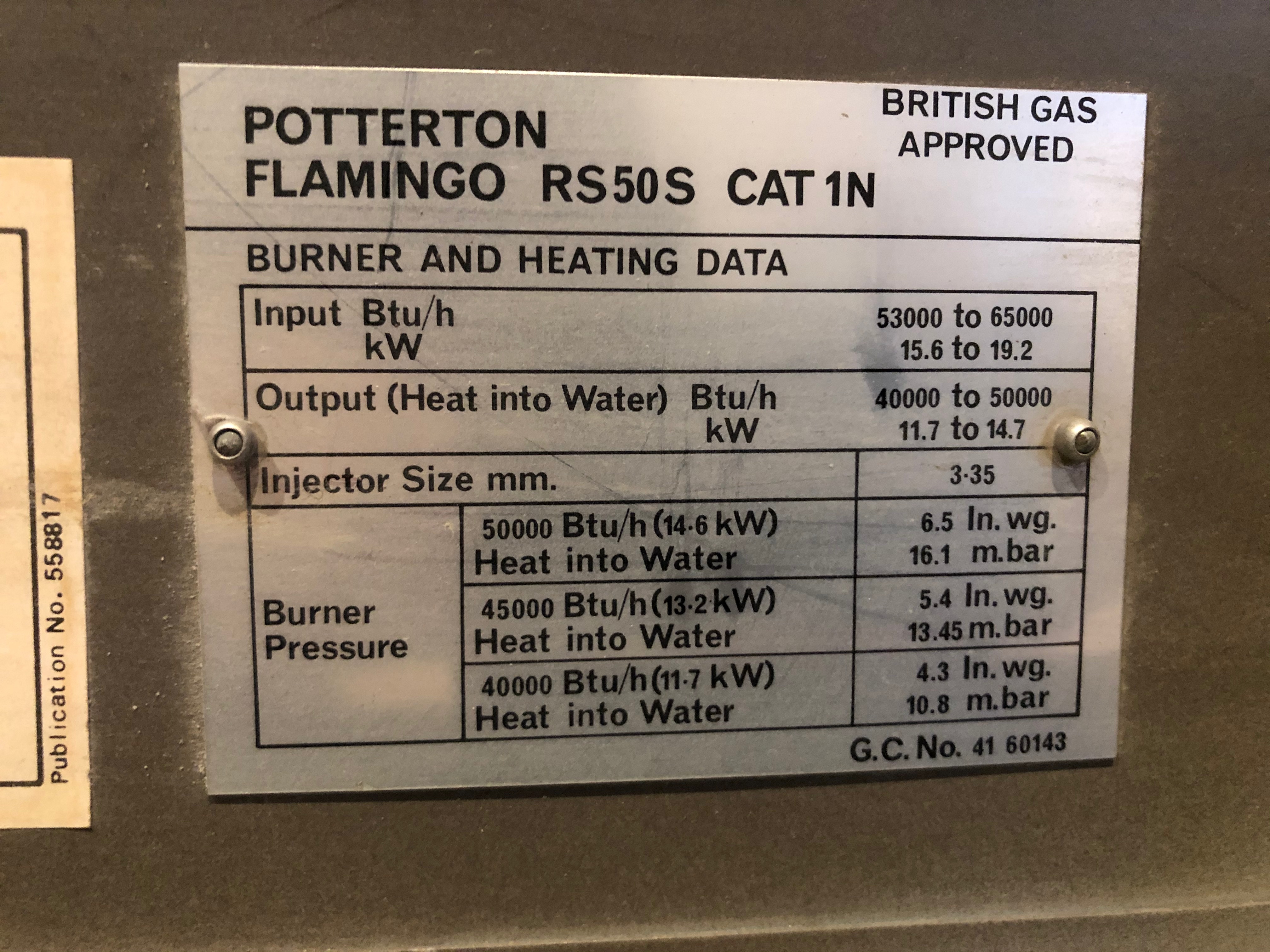 The most common version of the Flamingo is the 50s which looks rather different from the Flamingo photos at the top of this article. Until I serviced one the other day, I’ve not had any photos of the 50s but that all changes now. I took lots of photos of the service (with customer’s permission) so here is a photo-by-photo account of servicing a Potterton Flamingo 50s.